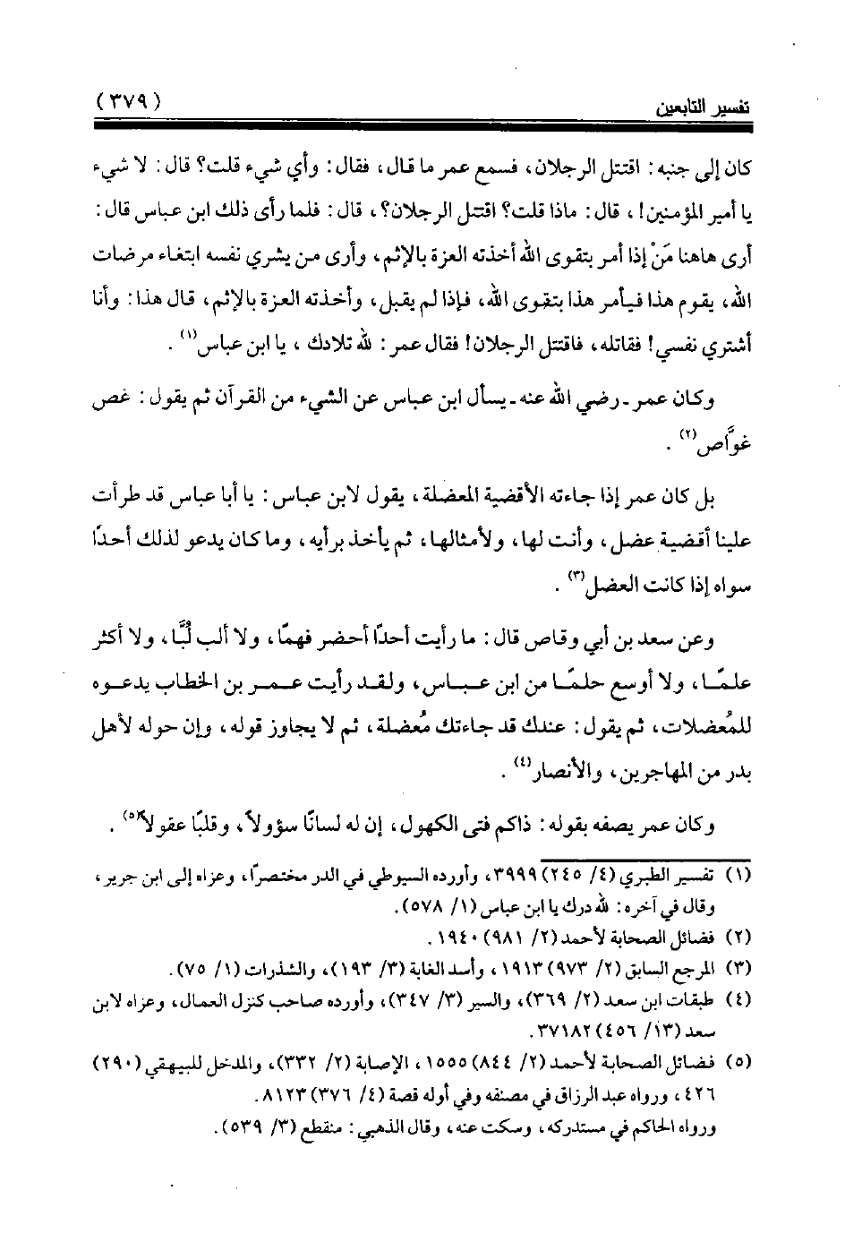 كان إلى جنبه: اقتتل الرجلان، فسمع عمر ما قال، فقال: وأي شيء قلت؟ قال: لا شيء يا أمير المؤمنين!، قال: ماذا قلت؟ اقتتل الرجلان؟، قال: فلما رأى ذلك ابن عباس قال: