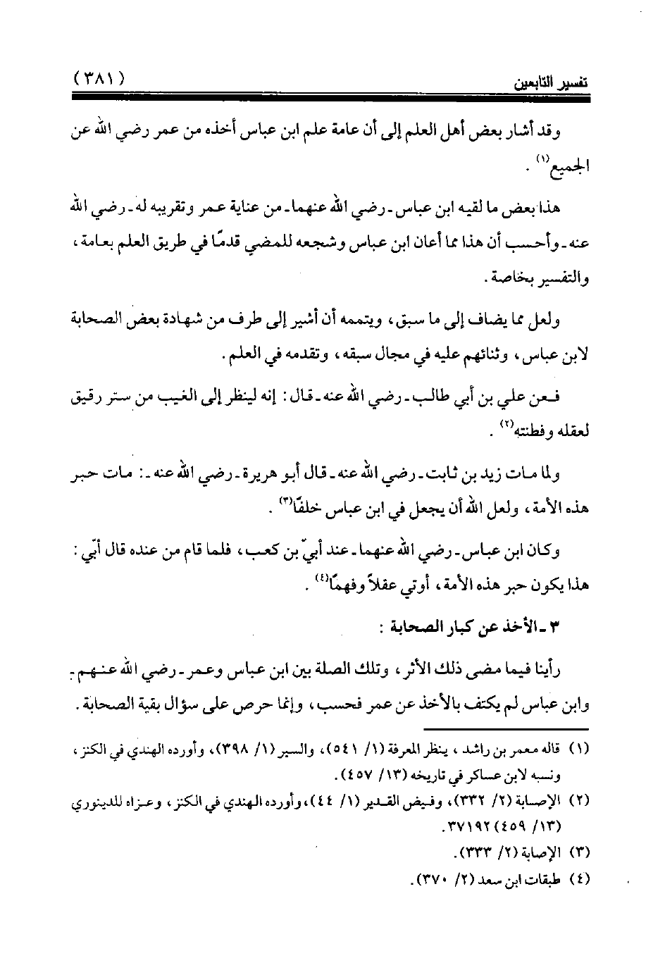 رأينا فيما مضى ذلك الأثر، وتلك الصلة بين ابن عباس وعمر رضي الله عنهم وابن عباس لم يكتف بالأخذ عن عمر فحسب، وإنما حرص على سؤال بقية الصحابة.