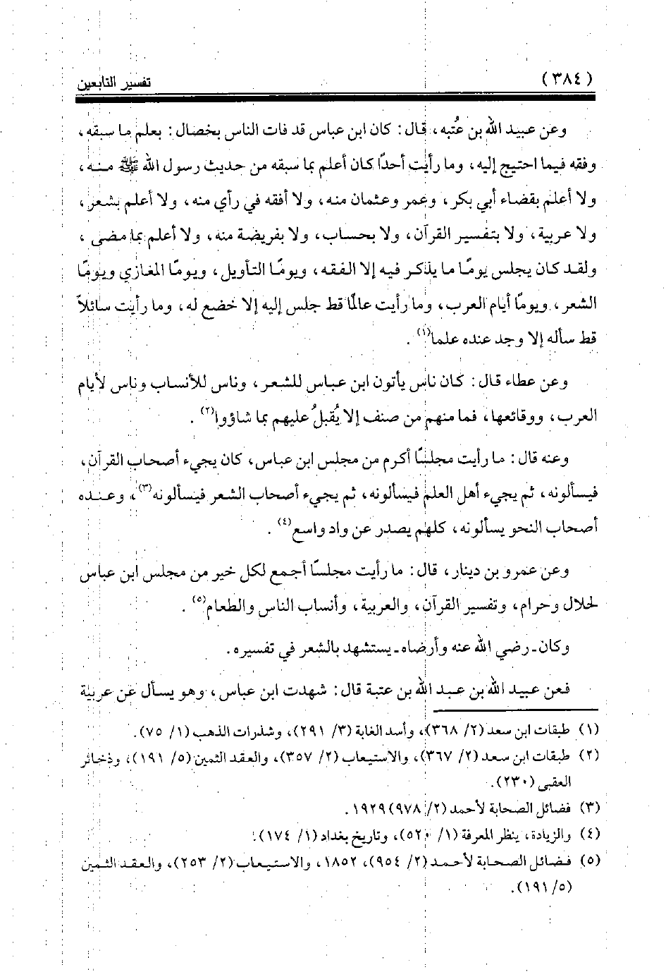 وعن عطاء قال: كان ناس يأتون ابن عباس للشعر، وناس للأنساب وناس لأيام العرب، ووقائعها، فما منهم من صنف إلا يقبل عليهم بما شاءوا (¬2).