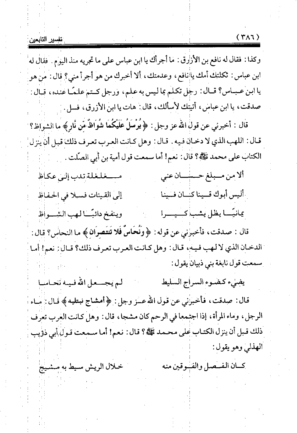 صدقت، يا ابن عباس، أتيتك لأسألك، قال: هات يا ابن الأزرق، فسل.