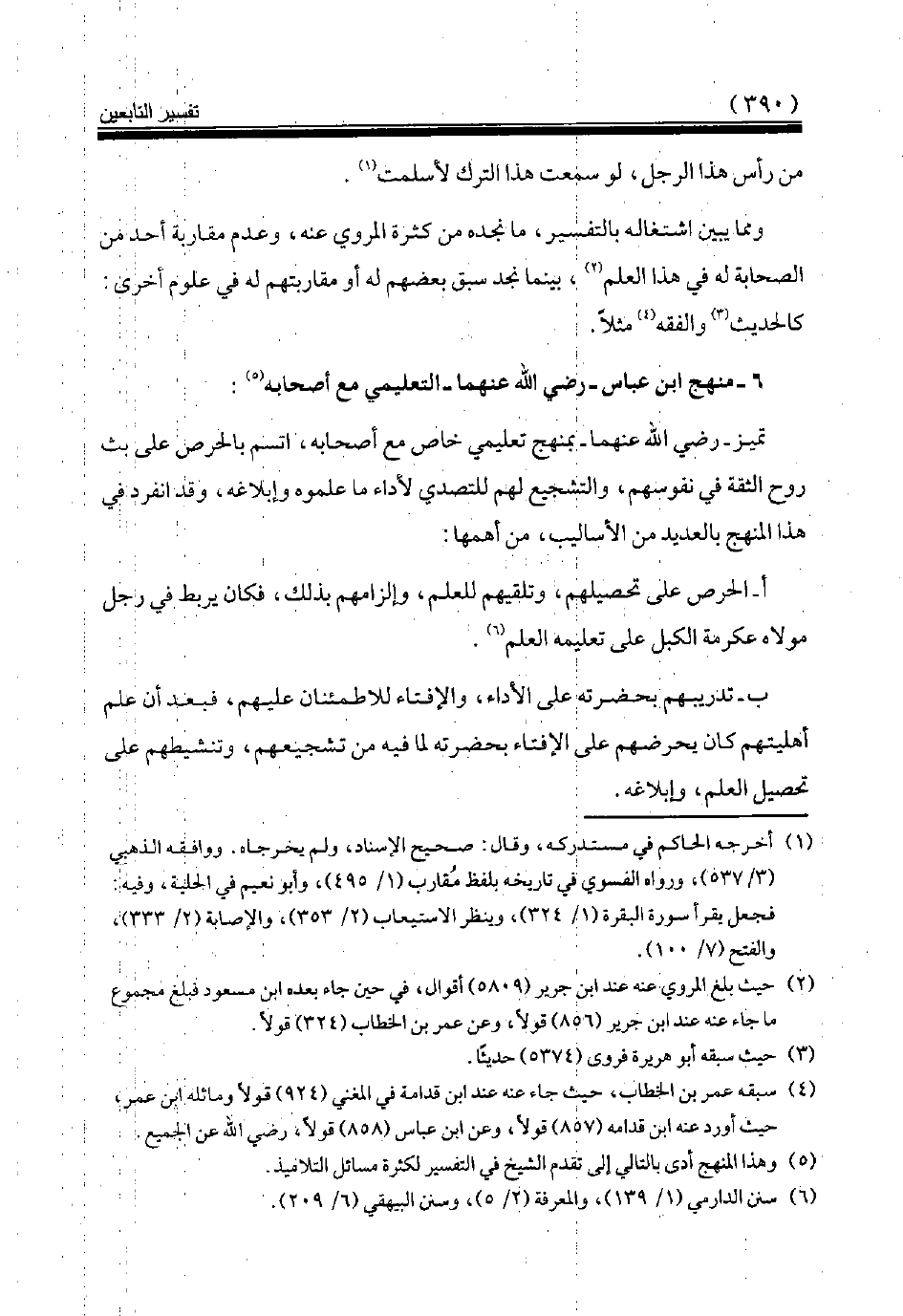 6 - منهج ابن عباس رضي الله عنهما التعليمي مع أصحابه (¬5):