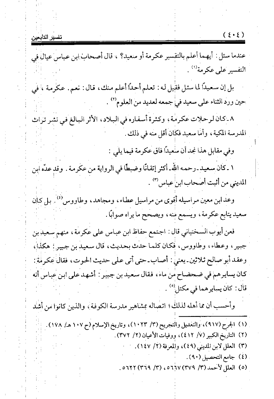 1 - كان سعيد رحمه الله أكثر إتقانا وضبطا في الرواية من عكرمة. وقد عدّه ابن المديني من أثبت أصحاب ابن عباس (¬3).