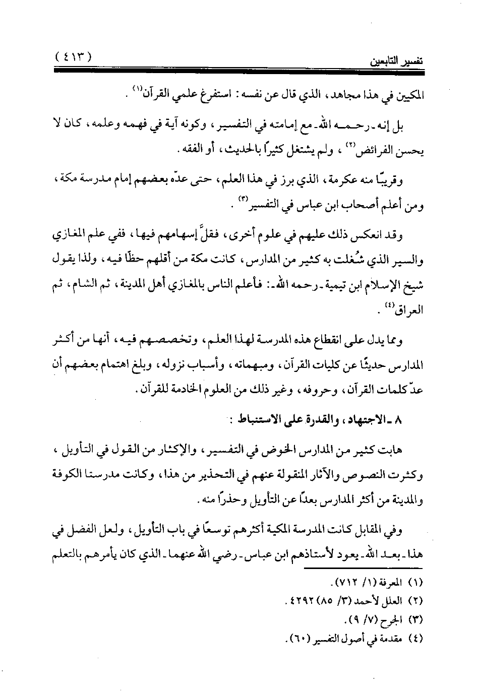 وفي المقابل كانت المدرسة المكية أكثرهم توسعا في باب التأويل، ولعل الفضل في هذا بعد الله يعود لأستاذهم ابن عباس رضي الله عنهما الذي كان يأمرهم بالتعلم