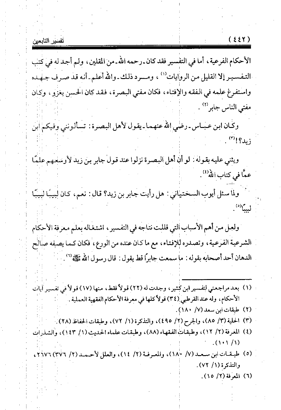 (¬1) بعد مراجعتي لتفسير ابن كثير، وجدت له (22) قولا فقط، منها (17) قولا في تفسير آيات الأحكام، وله عند القرطبي (34) قولا كلها في معرفة الأحكام الفقهية العملية.