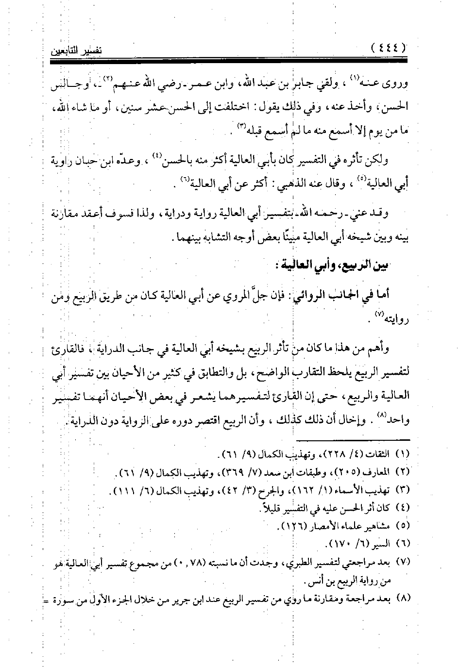 (¬7) بعد مراجعتي لتفسير الطبري، وجدت أن ما نسبته (78، 0) من مجموع تفسير أبي العالية هو من رواية الربيع بن أنس.