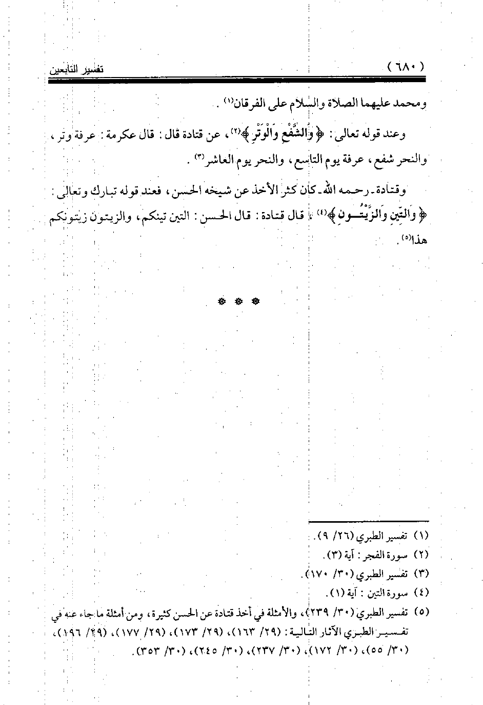(¬5) تفسير الطبري (30/ 239)، والأمثلة في أخذ قتادة عن الحسن كثيرة، ومن أمثلة ما جاء عنه في تفسير الطبري الآثار التالية: (29/ 163)، (29/ 173)، (29/ 177)، (29/ 196)، (30/ 55)، (30/ 172)، (30/ 237)، (30/ 245)، (30/ 353).