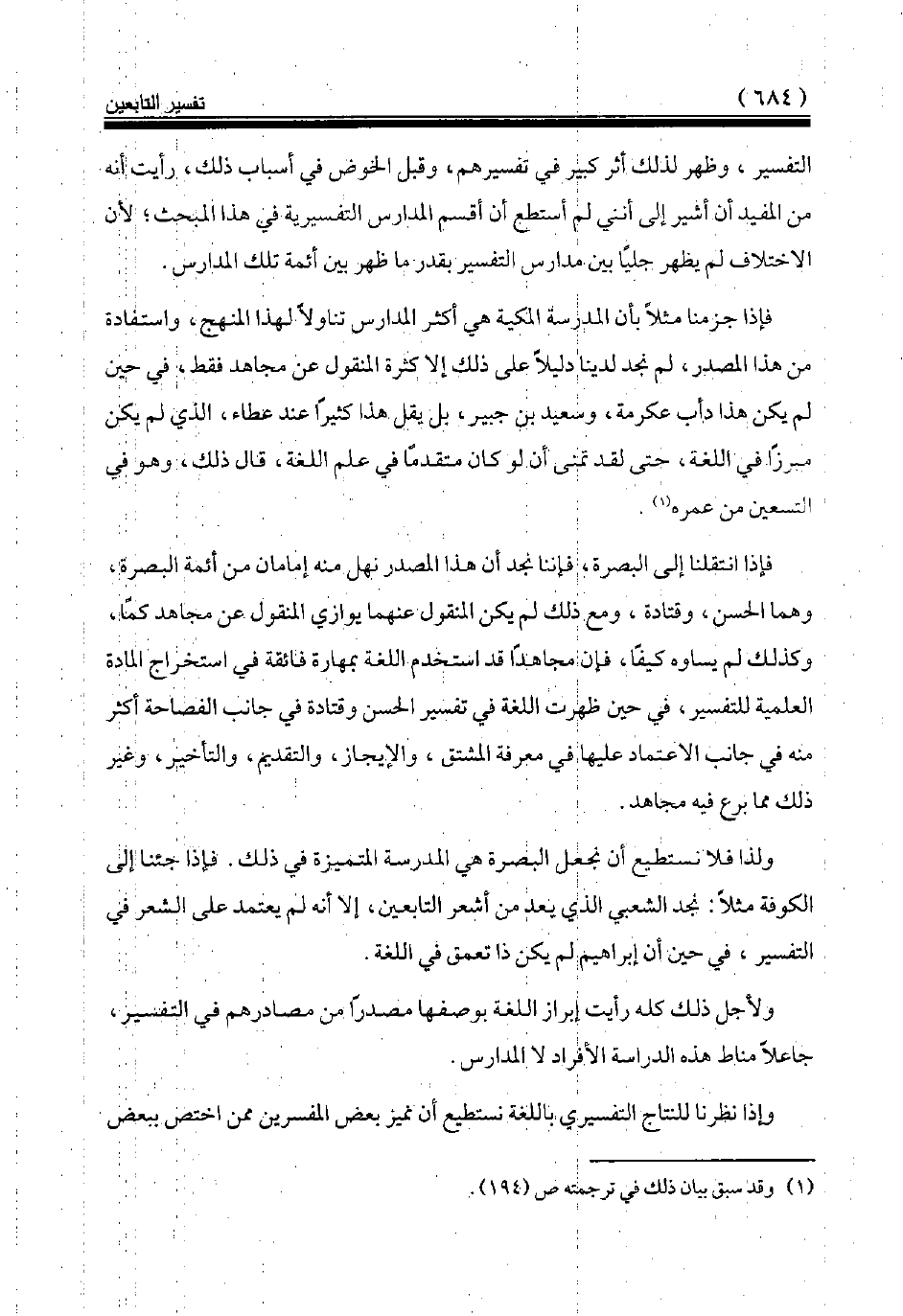 فإذا جزمنا مثلا بأن المدرسة المكية هي أكثر المدارس تناولا لهذا المنهج، واستفادة من هذا المصدر، لم نجد لدينا دليلا على ذلك إلا كثرة المنقول عن مجاهد فقط، في حين لم يكن هذا دأب عكرمة، وسعيد بن جبير، بل يقل هذا كثيرا عند عطاء، الذي لم يكن مبرزا في اللغة، حتى لقد تمنى أن لو كان متقدما في علم اللغة، قال ذلك، وهو في التسعين من عمره (¬1).