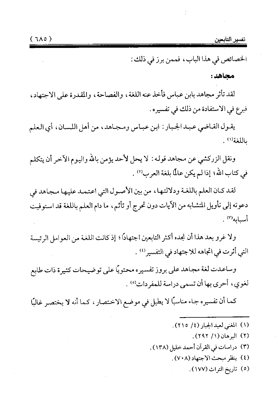 يقول القاضي عبد الجبار: ابن عباس ومجاهد، من أهل اللسان، أي العلم باللغة (¬1).