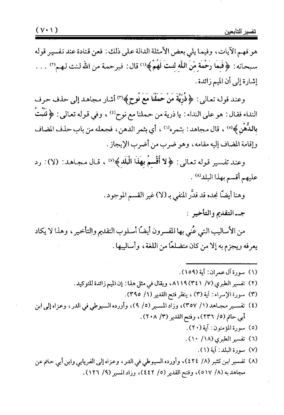 (¬4) تفسير مجاهد (1/ 357)، وزاد المسير (5/ 9)، وأورده السيوطي في الدر، وعزاه إلى ابن أبي حاتم (5/ 236)، وفتح القدير (3/ 208).