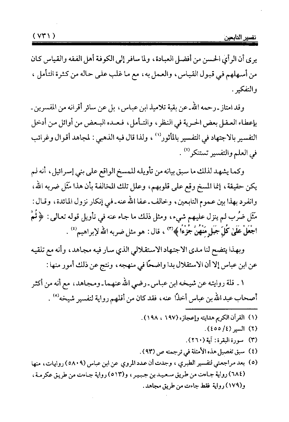 (¬5) بعد مراجعتي لتفسير الطبري، وجدت أن عدد المروي عن ابن عباس (5809) روايات، منها (684) رواية جاءت من طريق سعيد بن جبير، و (513) رواية جاءت من طريق عكرمة، و (179) رواية فقط جاءت من طريق مجاهد.