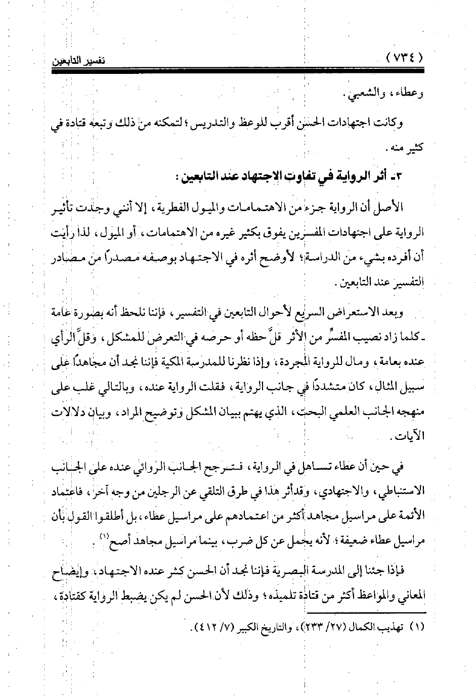 3 - أثر الرواية في تفاوت الاجتهاد عند التابعين: