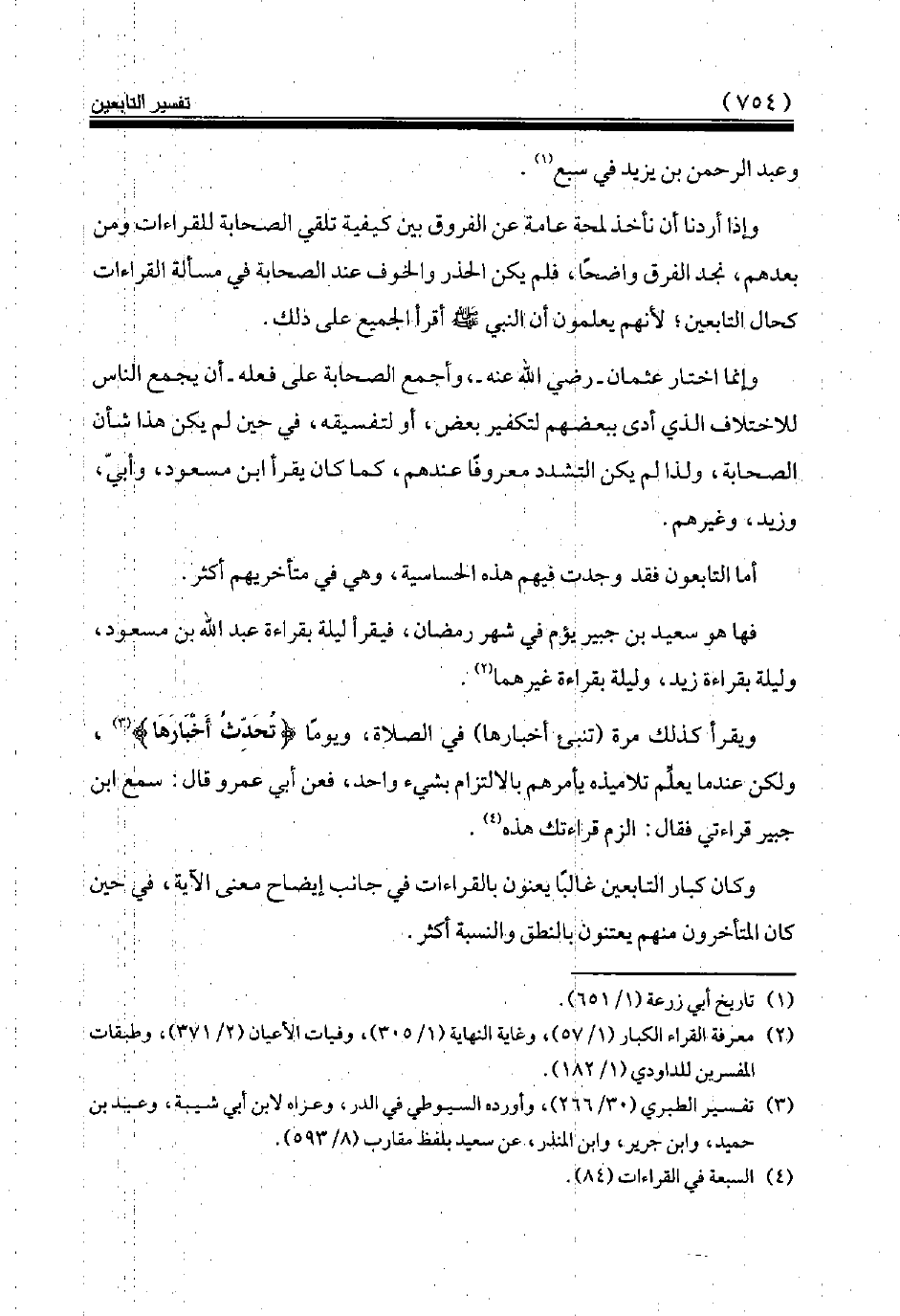 فها هو سعيد بن جبير يؤم في شهر رمضان، فيقرأ ليلة بقراءة عبد الله بن مسعود، وليلة بقراءة زيد، وليلة بقراءة غيرهما (¬2).