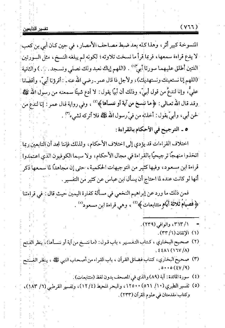 فمن ذلك ما ورد عن إبراهيم النخعي في مسألة كفارة اليمين حيث قال: في قراءتنا فصيام ثلاثة أيّام متتابعات (¬4)، وهي قراءة ابن مسعود (¬5).