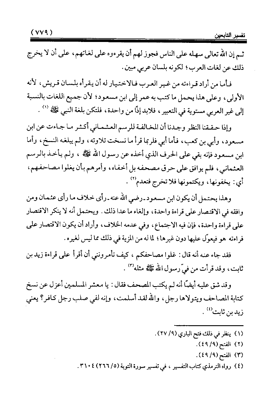 وهذا يحتمل أن يكون ابن مسعود رضي الله عنه رأى خلاف ما رأى عثمان ومن وافقه في الاقتصار على قراءة واحدة، وإلغاء ما عدا ذلك. ويحتمل أنه لا ينكر الاقتصار على قراءة واحدة، فإن فيه الاجتماع، وفي عدمه الخلاف، وأراد أن يكون الاقتصار على قراءته هو فيعوّل عليها دون غيرها لما له من المزية في ذلك مما ليس لغيره.
