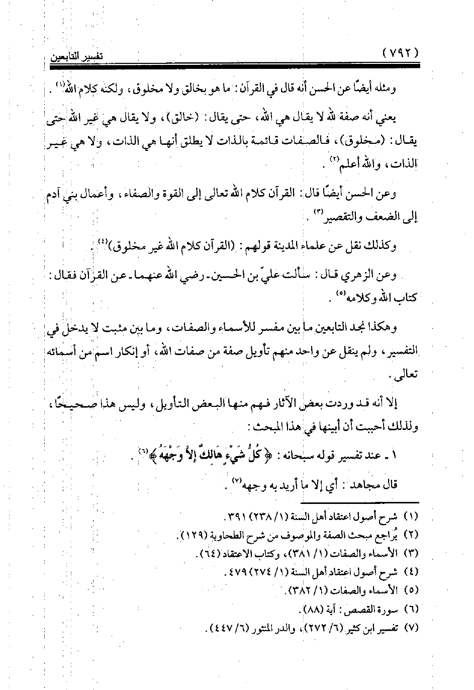 1 - عند تفسير قوله سبحانه: {كُلُّ شَيْءٍ هَالِكٌ إِلَّا وَجْهَهُ} (¬6).
