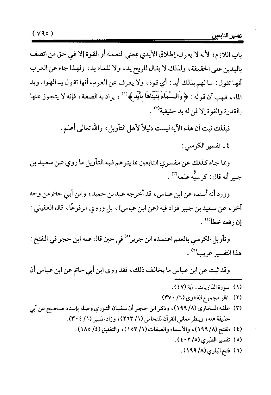 وتأويل الكرسي بالعلم اعتمده ابن جرير (¬5) في حين قال عنه ابن حجر في الفتح: