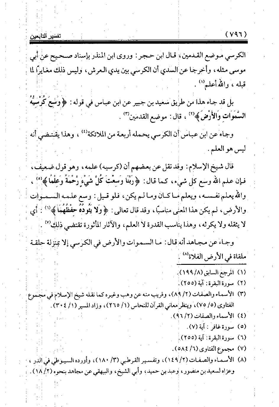 بل قد جاء هذا من طريق سعيد بن جبير عن ابن عباس في قوله: {وَسِعَ كُرْسِيُّهُ السَّمَاوَاتِ وَالْأَرْضَ} (¬2)، قال: موضع القدمين (¬3).