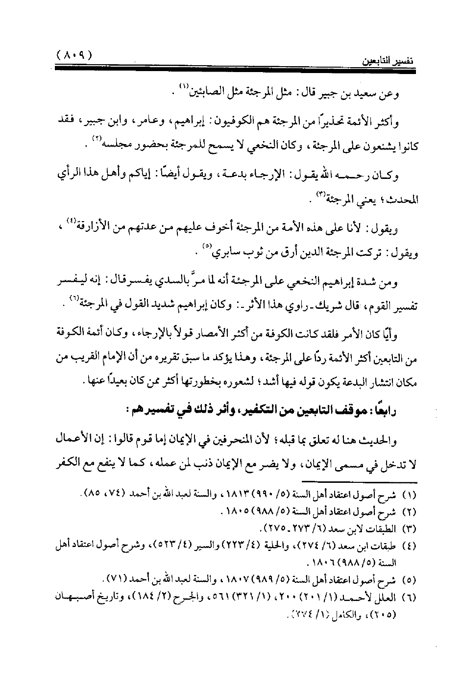 وأكثر الأئمة تحذيرا من المرجئة هم الكوفيون: إبراهيم، وعامر، وابن جبير، فقد كانوا يشنعون على المرجئة، وكان النخعي لا يسمح للمرجئة بحضور مجلسه (¬2).