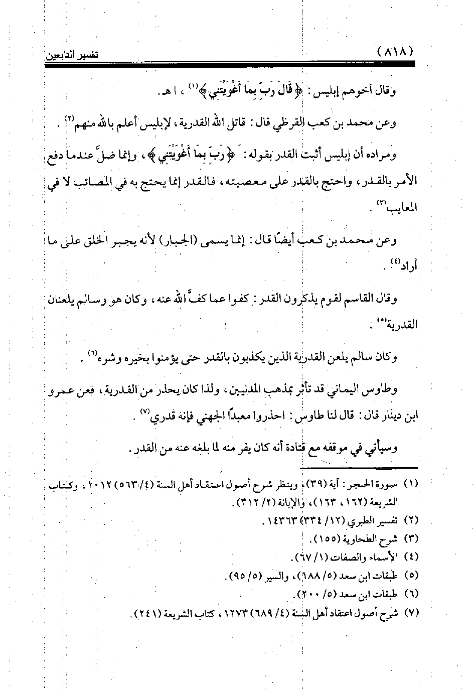 وعن محمد بن كعب القرظي قال: قاتل الله القدرية، لإبليس أعلم بالله منهم (¬2).