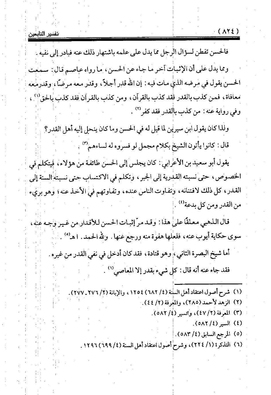 ولذا كان يقول ابن سيرين لما قيل له في الحسن وما كان ينحل إليه أهل القدر