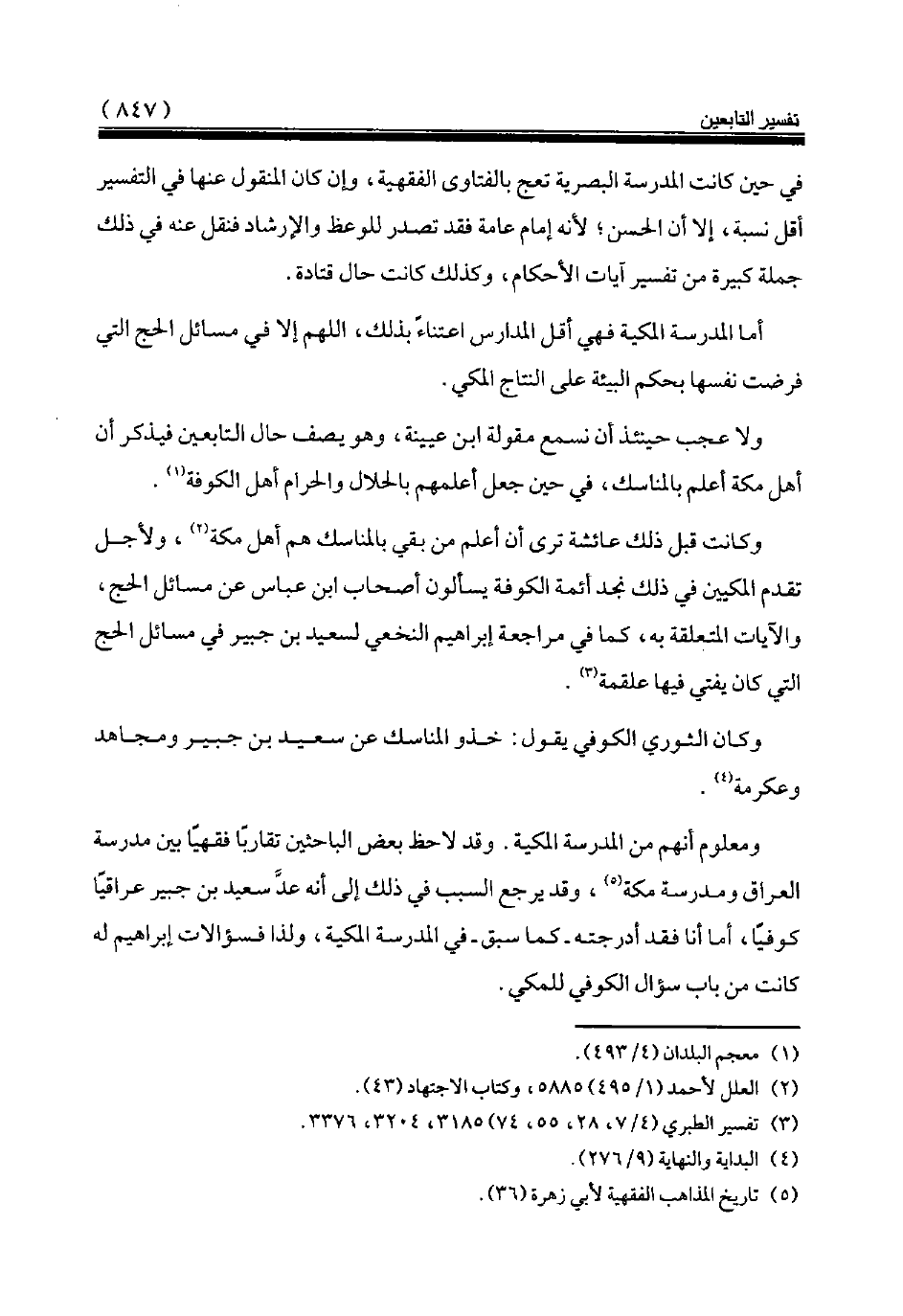 ومعلوم أنهم من المدرسة المكية. وقد لاحظ بعض الباحثين تقاربا فقهيا بين مدرسة العراق ومدرسة مكة (¬5)، وقد يرجع السبب في ذلك إلى أنه عدّ سعيد بن جبير عراقيا كوفيا، أما أنا فقد أدرجته كما سبق في المدرسة المكية، ولذا فسؤالات إبراهيم له كانت من باب سؤال الكوفي للمكي.