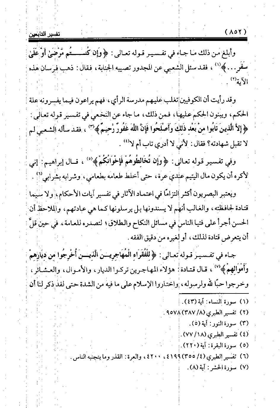 وأبلغ من ذلك ما جاء في تفسير قوله تعالى: {وَإِنْ كُنْتُمْ مَرْضى َ أَوْ عَلى َ سَفَرٍ} (¬1)، فقد سئل الشعبي عن المجدور تصيبه الجنابة، فقال: ذهب فرسان هذه الآية (¬2).