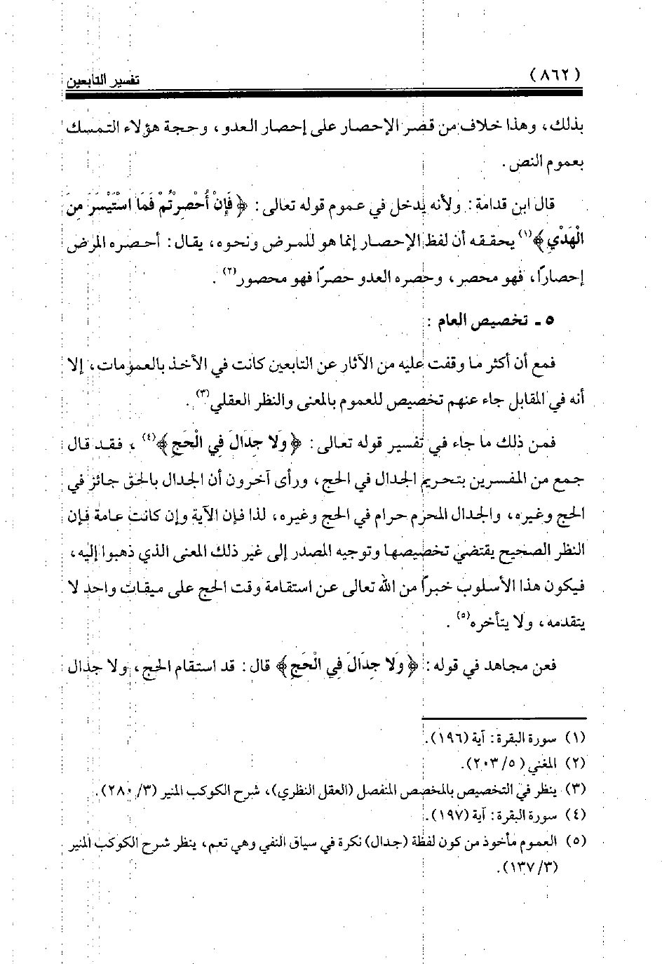 (¬5) العموم مأخوذ من كون لفظة (جدال) نكرة في سياق النفي وهي تعم، ينظر شرح الكوكب المنير (3/ 137).