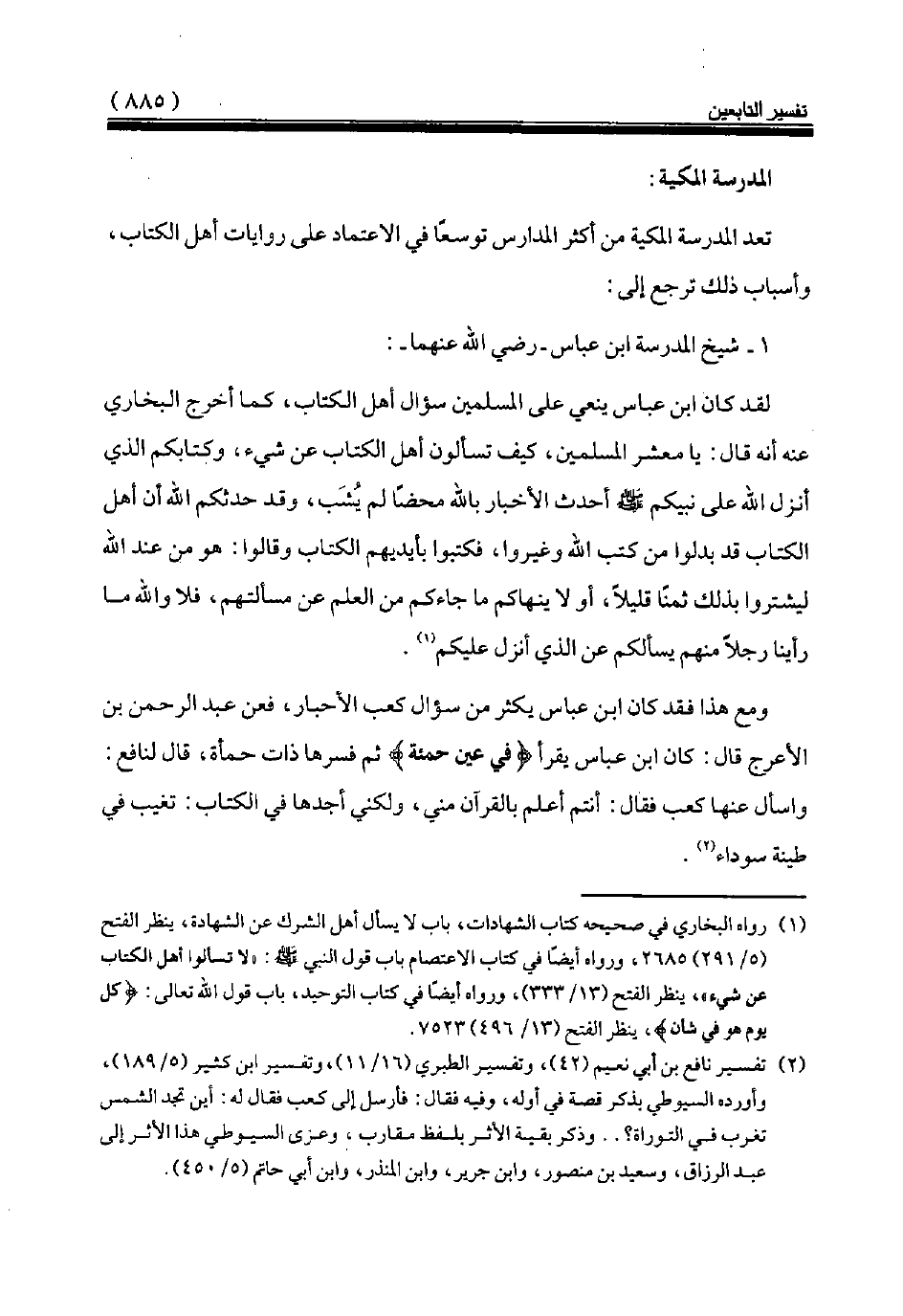 ومع هذا فقد كان ابن عباس يكثر من سؤال كعب الأحبار، فعن عبد الرحمن بن الأعرج قال: كان ابن عباس يقرأ {فِي عَيْنٍ حَمِئَةٍ} ثم فسرها ذات حمأة، قال لنافع: