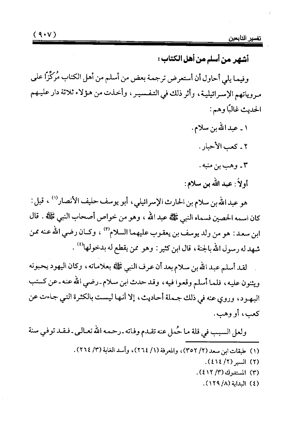 وفيما يلي أحاول أن أستعرض ترجمة بعض من أسلم من أهل الكتاب مركّزا على مروياتهم الإسرائيلية، وأثر ذلك في التفسير، وأخذت من هؤلاء ثلاثة دار عليهم الحديث غالبا وهم: