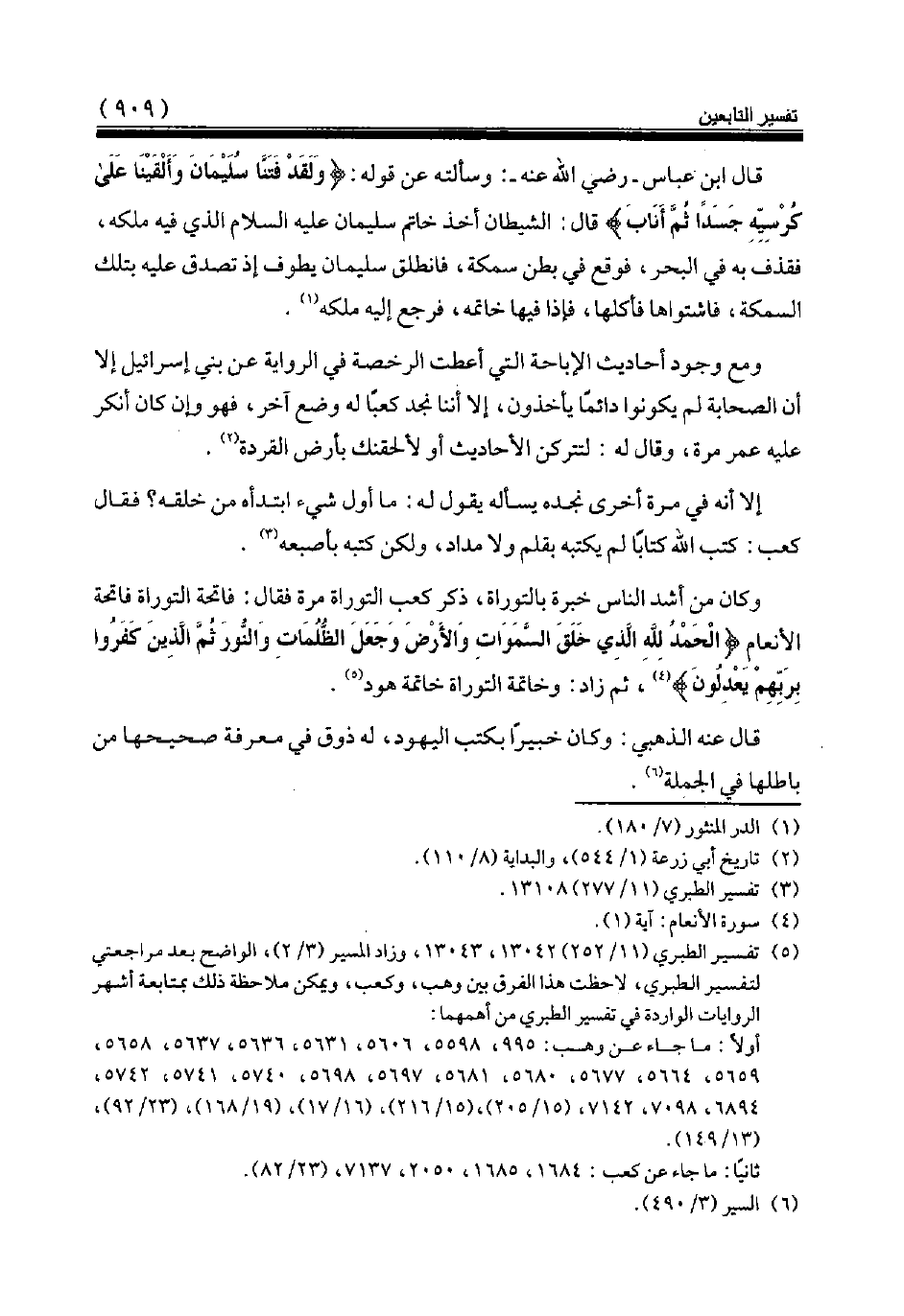 (¬5) تفسير الطبري (11/ 252) 13042، 13043، وزاد المسير (3/ 2)، الواضح بعد مراجعتي لتفسير الطبري، لاحظت هذا الفرق بين وهب، وكعب، ويمكن ملاحظة ذلك بمتابعة أشهر الروايات الواردة في تفسير الطبري من أهمهما: