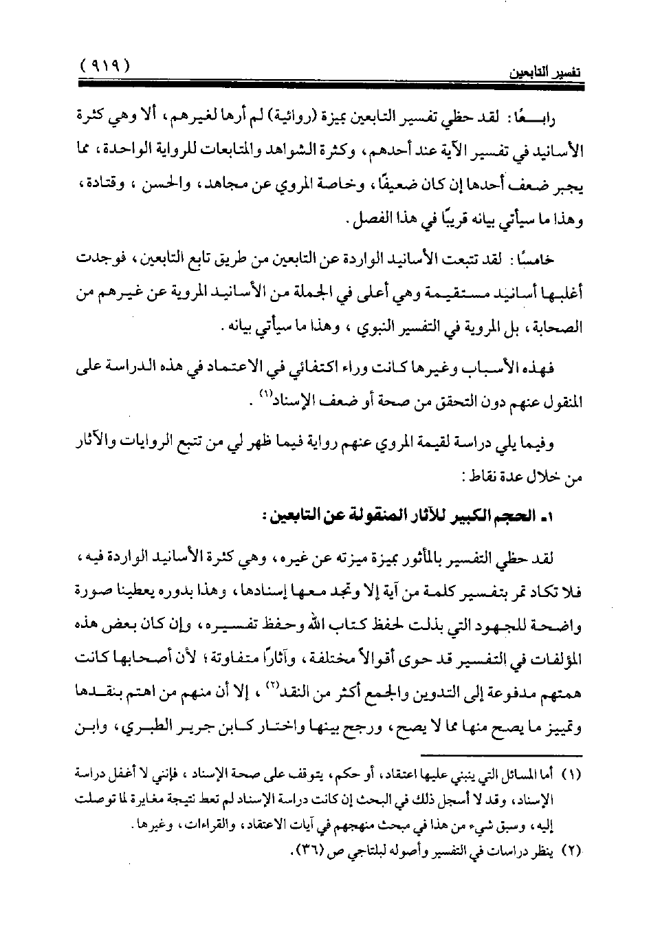 1 - الحجم الكبير للآثار المنقولة عن التابعين: