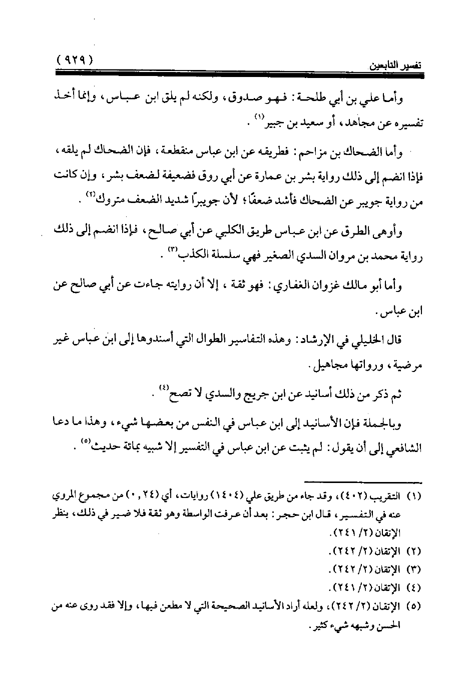 (¬1) التقريب (402)، وقد جاء من طريق علي (1404) روايات، أي (24، 0) من مجموع المروي عنه في التفسير، قال ابن حجر: بعد أن عرفت الواسطة وهو ثقة فلا ضير في ذلك، ينظر الإتقان (2/ 241).
