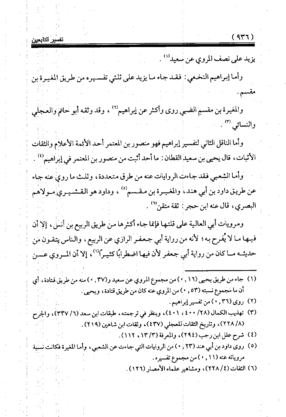 (¬5) روى داود بن أبي هند (23، 0) من الروايات التي جاءت عن الشعبي، وأما المغيرة فكانت نسبة مروياته عنه (11، 0) من مجموع تفسيره.