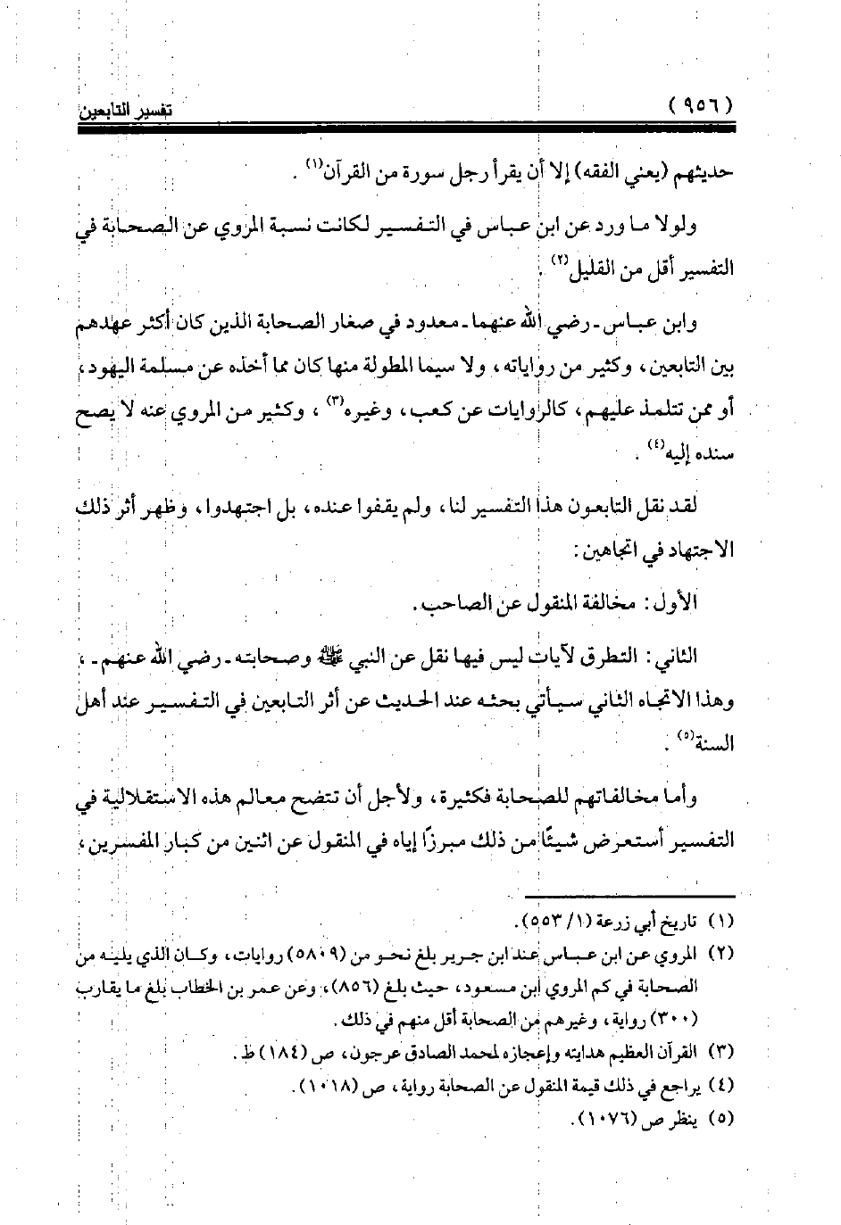 (¬2) المروي عن ابن عباس عند ابن جرير بلغ نحو من (5809) روايات، وكان الذي يليه من الصحابة في كم المروي ابن مسعود، حيث بلغ (856)، وعن عمر بن الخطاب بلغ ما يقارب (300) رواية، وغيرهم من الصحابة أقل منهم في ذلك.