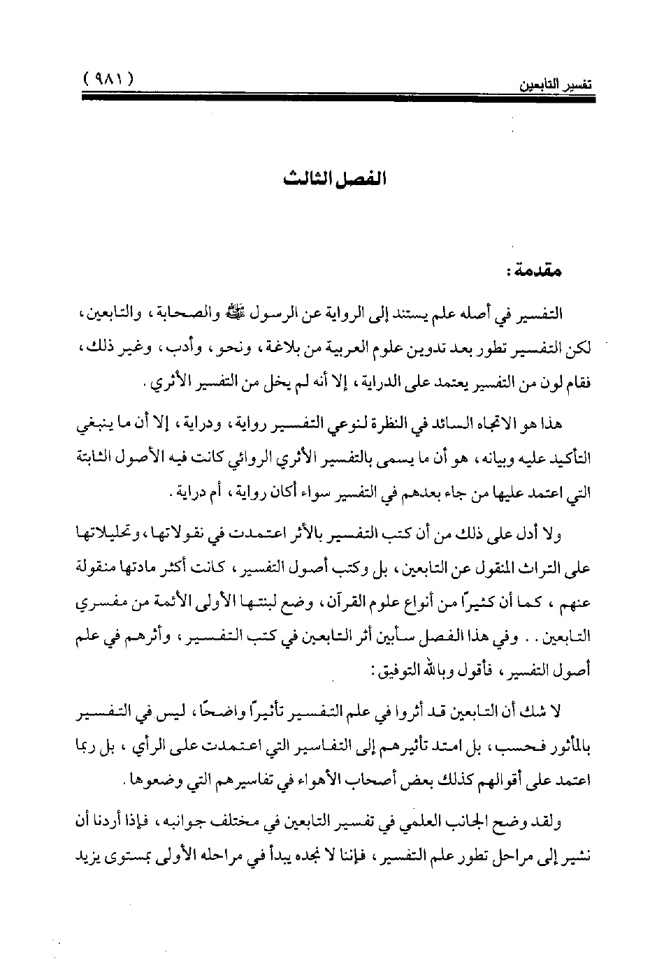 ولا أدل على ذلك من أن كتب التفسير بالأثر اعتمدت في نقولاتها، وتحليلاتها على التراث المنقول عن التابعين، بل وكتب أصول التفسير، كانت أكثر مادتها منقولة عنهم، كما أن كثيرا من أنواع علوم القرآن، وضع لبنتها الأولى الأئمة من مفسري التابعين وفي هذا الفصل سأبين أثر التابعين في كتب التفسير، وأثرهم في علم أصول التفسير، فأقول وبالله التوفيق: