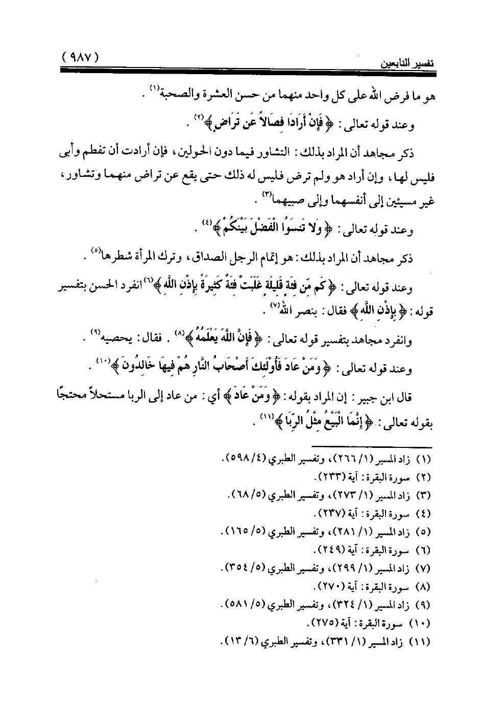 (¬9) زاد المسير (1/ 324)، وتفسير الطبري (5/ 581).