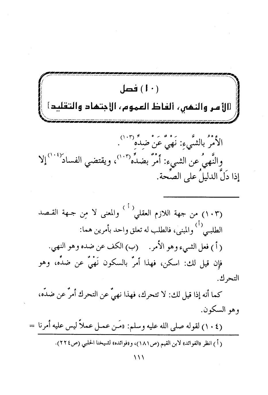 فصل: الأمر والنهي، ألفاظ العموم، الاجتهاد والتقليد
