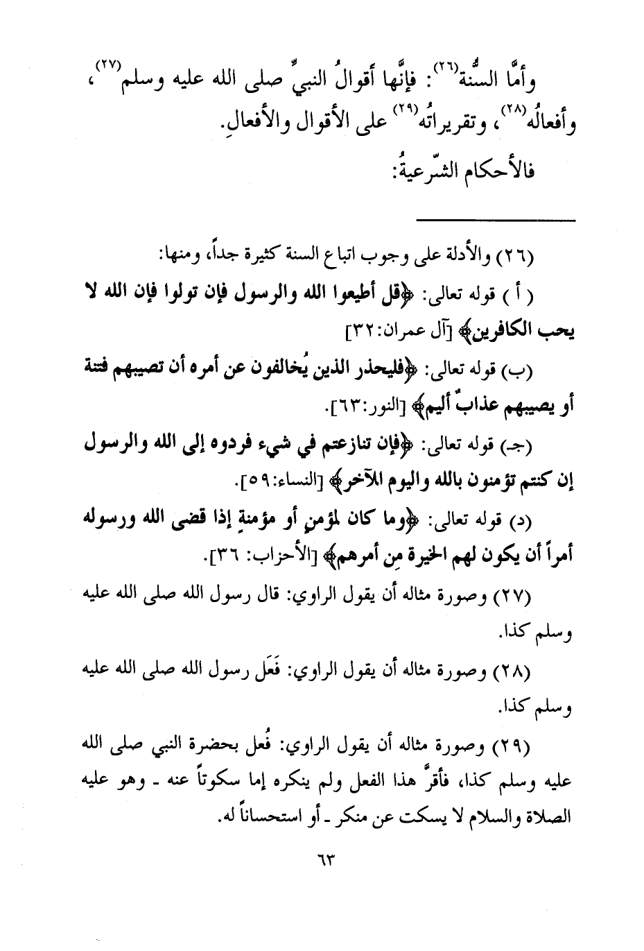 وأما السنة: فإنها أقوال النبي - صلى الله عليه وسلم - وأفعاله وتقريراته على الأقوال والأفعال.