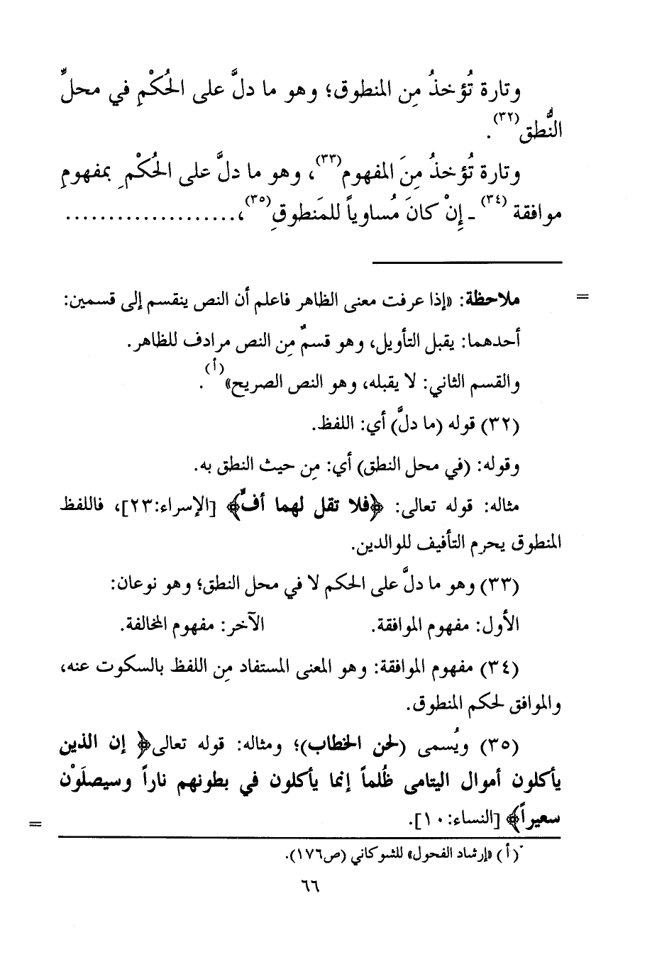 وتارة تؤخذ من المنطوق، وهو ما دل على الحكم فى محل النطق.