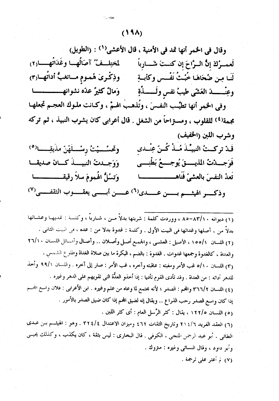 1ر - واية الديوان: سائلا 2في الأصل صحاها والتصحيح من ديوان الأعشى 3في الأصل أداتها والتصحيح من ديوان الأعشى 4هذه رواية الديوان وفي الأصل ومال كثير عدة نشواتها