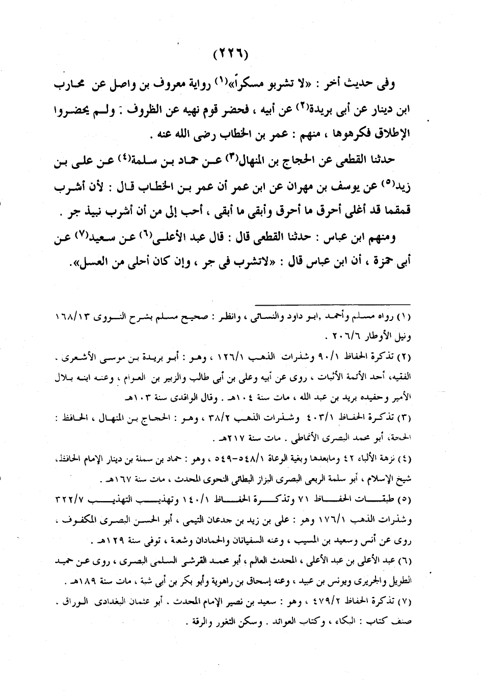ومنهم ابن عباس حدثنا القطيعي قَالَ حَدَّثَنَا عَبْدُ الْأَعْلَى عَنْ سَعِيدٍ عَنْ أَبِي حَمْزَةَ أَنَّ ابْنَ عَبَّاسٍ قَالَ: لَا تَشْرَبْ فِي جَرٍّ وَإِنْ كَانَ أَحْلَى من العسل.