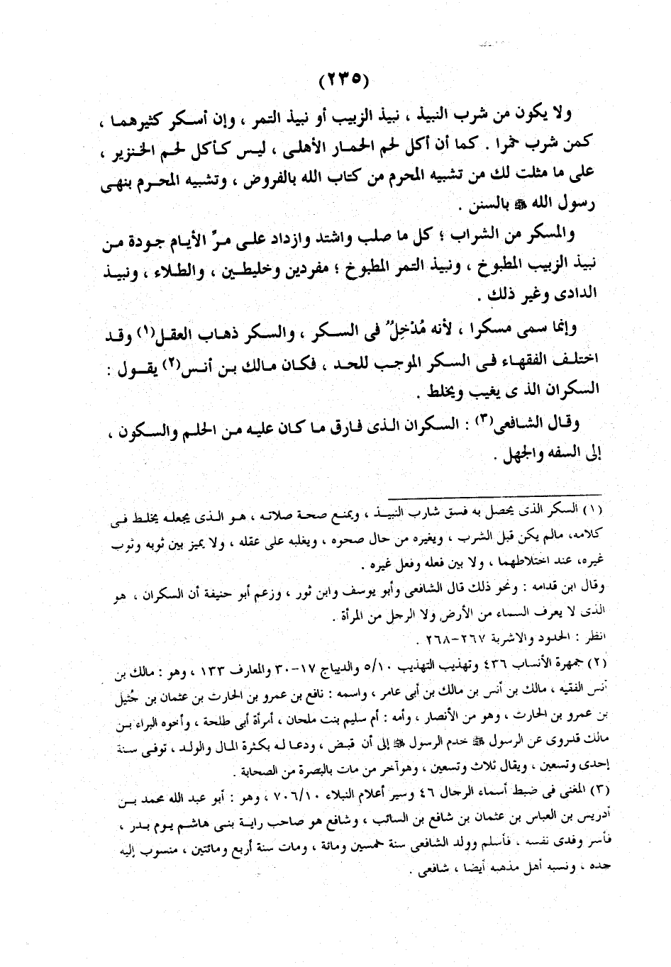 وقد اخْتَلَفَ الْفُقَهَاءُ فِي السُّكْرِ الْمُوجِبِ للحد فكان مالك ابن أَنَسٍ يَقُولُ: السَّكْرَانُ الَّذِي يَغِيبُ وَيَخْلِطُ. وَقَالَ الشَّافِعِيُّ: السَّكْرَانُ الَّذِي فَارَقَ مَا كَانَ عَلَيْهِ مِنَ الحلم والسكون إلى السفهة والجهل.
