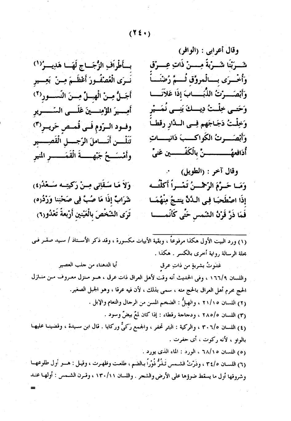 وَقَالَ أَعْرَابِيٌّ:؟ شَرِبْنَا شَرْبَةً مِنْ ذَاتِ عِرْقٍ بِأَطْرَافِ الزُّجَاجِ لَهَا هَدِيرُ