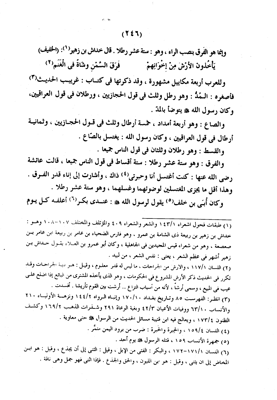 وَلِلْعَرَبِ أَرْبَعَةُ مَكَايِيلَ مَشْهُورَةٍ وَقَدْ ذَكَرْتُهَا فِي كِتَابِ غَرِيبِ الْحَدِيثِ فَأَصْغَرُهُ الْمُدُّ وَهُوَ رَطْلٌ وَثُلُثٌ فِي قَوْلِ الْحِجَازِيِّينَ ورطلان في قول العراقيين.
