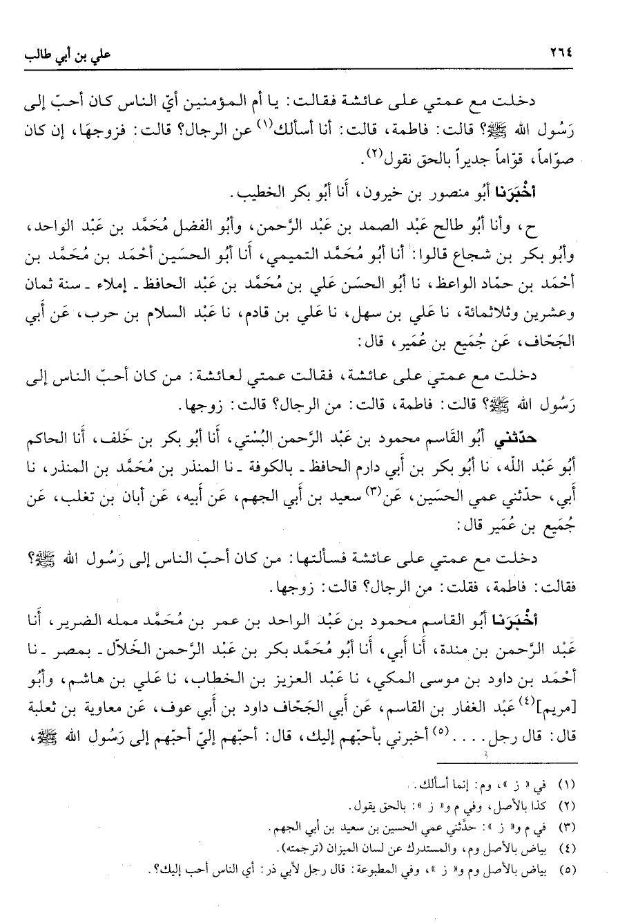 رسول الله (صلى الله عليه وسلم) قالت فاطمة قالت أنا اسألك (1) عن الرجال قالت فزوجها إن كان صواما قواما جديرا بالحق نقول (2) اخبرنا أبو منصور بن خيرون أنا أبو بكر الخطيب ح وأنا أبو طالح عبد الصمد بن عبد الرحمن وأبو الفضل محمد بن عبد الواحد وأبو بكر بن شجاع قالوا أنا أبو محمد التميمي أنا أبو الحسين أحمد بن محمد بن احمد بن حماد الواعظ نا أبو الحسن علي بن محمد بن عبد الحافظ إملاء سنة ثمان وعشرين وثلاثمائة ناعلي بن سهل نا علي بن قادم نا عبد السلام بن حرب عن أبي الجحاف عن جميع بن عمير قال دخلت مع عمتي على عائشة فقالت عمتي لعائشة من كان أحب الناس إلى رسول الله (صلى الله عليه وسلم) قالت فاطمة قالت من الرجال قالت زوجها حدثني أبو القاسم محمود بن عبد الرحمن البستي أنا أبو بكر بن خلف أنا الحاكم أبو عبد الله نا أبو بكر بن أبي دارم الحافظ بالكوفة نا المنذر بن محمد بن المنذر نا أبي حدثني عمي الحسين عن (3) سعيد بن أبي الجهم عن أبيه عن أبان بن تغلب عن جميع بن عمير قال دخلت مع عمتي على عائشة فسألتها من كان أحب الناس إلى رسول الله (صلى الله عليه وسلم) فقالت فاطمة فقلت من الرجال قالت زوجها أخبرنا أبو القاسم محمود بن عبد الواحد بن عمر بن محمد ممله الضرير انا عبد الرحمن بن مندة أنا أبي انا أبو محمد بكر بن عبد الرحمن الخلال بمصر نا أحمد بن داود بن موسى المكي نا عبد العزيز بن الخطاب ناعلي بن هاشم وأبو مريم (4) عبد الغفار بن القاسم عن أبي الجحاف داود بن أبي عوف عن معاوية بن ثعلبة قال قال رجل (5) أخبرني بأحبهم إليك قال أحبهم إلي أحبهم إلى رسول الله (صلى الله عليه وسلم)