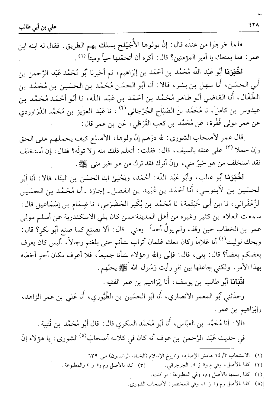 (1) الاستيعاب 3 / 64 هامش الاصابة وتاريخ الاسلام (الخلفاء الراشدون) ص 639