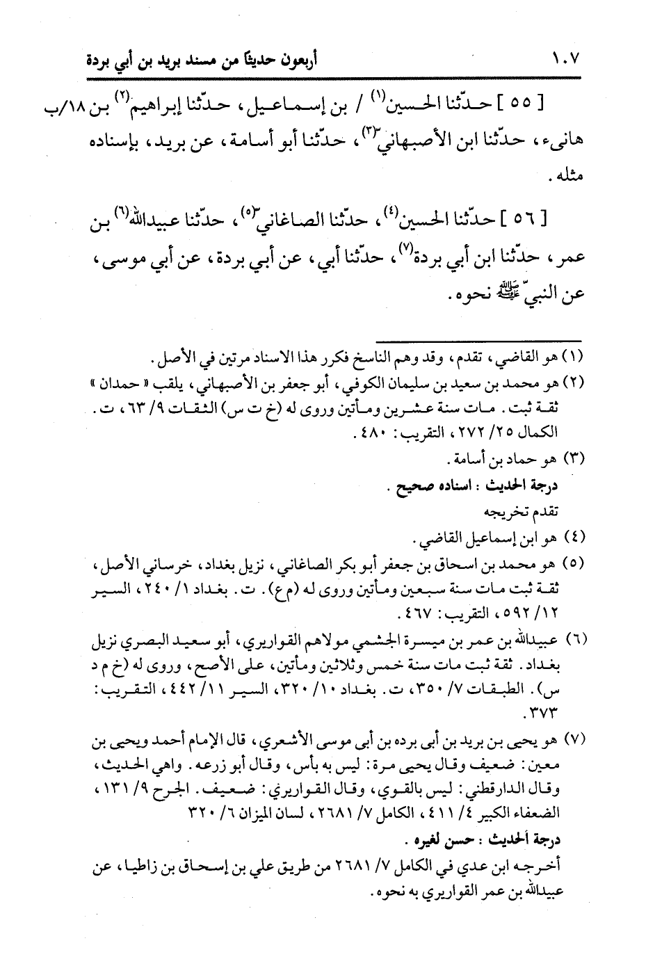 55- حَدَّثَنا الْحُسَيْنُ بْنُ إِسْمَاعِيلَ، حَدَّثَنا إِبْرَاهِيمُ بن هانىء، حَدَّثَنا ابْنُ الأَصْبَهَانِيِّ، حَدَّثَنا أَبُو أُسَامة، عَن بُرَيد، بِإِسْنَادِهِ، مِثْلَهُ.