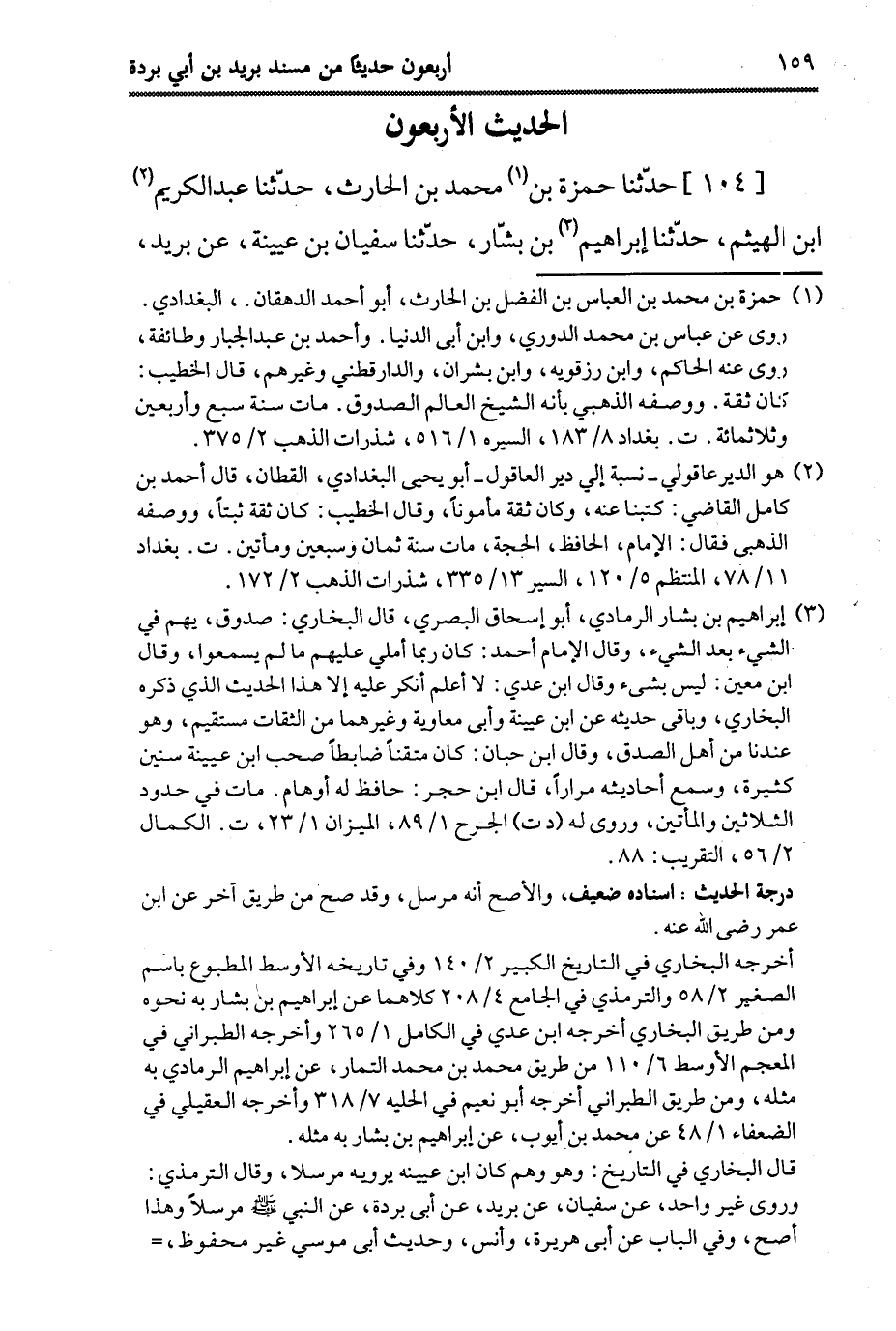كتاب أربعون حديثا من مسند بريد للدارقطني