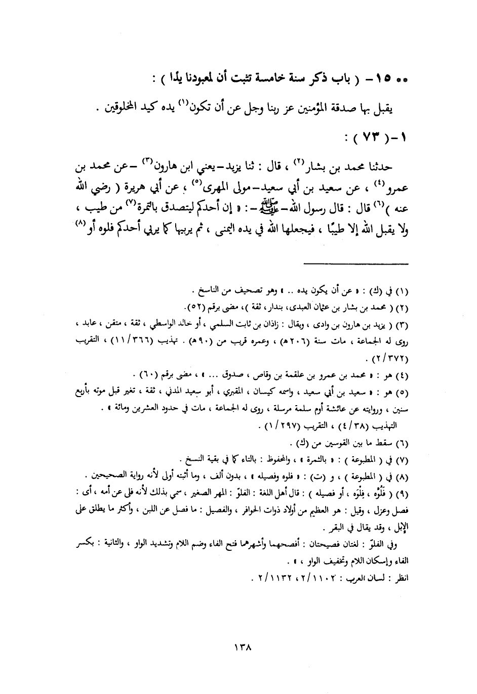 §15 - بَابُ ذِكْرِ سُنَّةٍ خَامِسَةٍ تُثْبِتُ أَنَّ لِمَعْبُودِنَا يَدًا يَقْبَلُ بِهَا صَدَقَةَ الْمُؤْمِنِينَ عَزَّ رَبُّنَا وَجَلَّ عَنْ أَنْ تَكُونَ يَدُهُ كَيَدِ الْمَخْلُوقِينَ