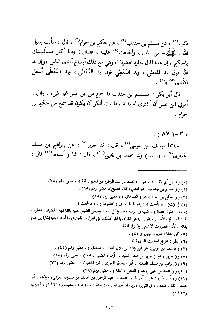 حَدَّثَنَا يُوسُفُ بْنُ مُوسَى، قَالَ: ثنا جَرِيرٌ، عَنْ إِبْرَاهِيمَ بْنِ مُسْلِمٍ الْهَجَرِيِّ، وَثَنَا مُحَمَّدُ بْنُ يَحْيَى، قَالَ: ثَنَا أَسْبَاطٌ، قَالَ -[157]-: ثَنَا إِبْرَاهِيمُ الْهَجَرِيُّ، وَثَنَا مُحَمَّدُ بْنُ بَشَّارٍ، قَالَ: ثَنَا مُحَمَّدُ بْنُ جَعْفَرٍ، قَالَ: ثَنَا شُعْبَةُ، عَنْ إِبْرَاهِيمَ الْهَجَرِيِّ، قَالَ: سَمِعْتُ أَبَا الْأَحْوَصِ، عَنْ عَبْدِ اللَّهِ، عَنِ النَّبِيِّ صَلَّى اللهُ عَلَيْهِ وَسَلَّمَ أَنَّهُ قَالَ: " §الْأَيْدِي ثَلَاثَةٌ: يَدُ اللَّهِ الْعُلْيَا , وَيَدُ الْمُعْطِي الَّتِي تَلِيهَا , وَيَدُ السَّائِلِ السُّفْلَى , إِلَى يَوْمِ الْقِيَامَةِ، فَاسْتَعِفَّ مِنَ السُّؤَالِ مَا اسْتَطَعْتَ " هَذَا لَفْظُ حَدِيثِ بُنْدَارٍ، وَقَالَ يُوسُفُ، وَمُحَمَّدُ بْنُ رَافِعٍ، عَنْ أَبِي الْأَحْوَصِ، عَنْ عَبْدِ اللَّهِ، وَقَالَ ابْنُ رَافِعٍ: «فَيَدُ الْمُعْطِي الثَّانِي» ، وَقَالَ يُوسُفُ: «وَيَدُ الْمُعْطِي الَّتِي تَلِيهَا» وَقَالَ: «اسْتَعْفُوا عَنِ السُّؤَالِ مَا اسْتَطَعْتُمْ» ، وَكُلُّهُمْ أَسْنَدَ الْخَبَرَ